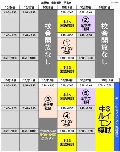 10/15(水)より,水曜日の夕方個別がスタートします。