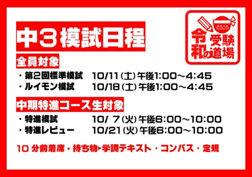 10月は笠井校内でのプレテストもありますが,3年生は実力模試も実施されます。