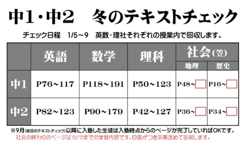 冬休み明けに,桐光の授業で使っているテキストの2学期分の完了チェックを行います。