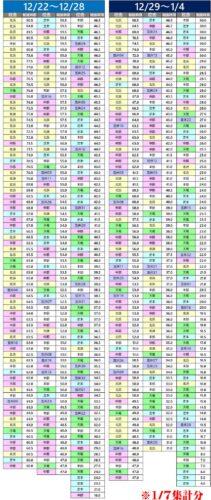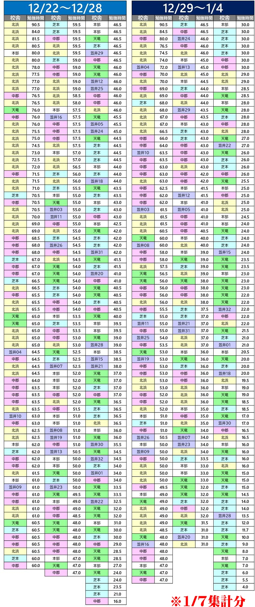 1/5の集計時に欠席していた生徒は含めていませんが,笠井校の生徒には学籍番号を記載しています。番号からお子様の位置をご確認ください。