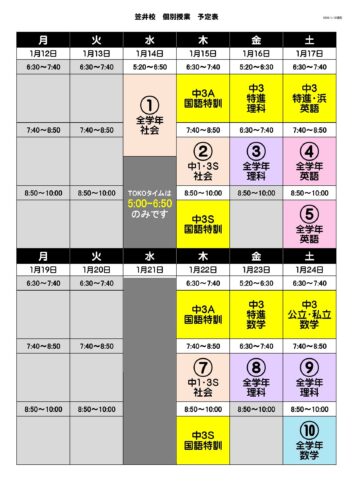 1/26からは学年末テスト期間です。この2週間の個別授業をどんどん活用してください。