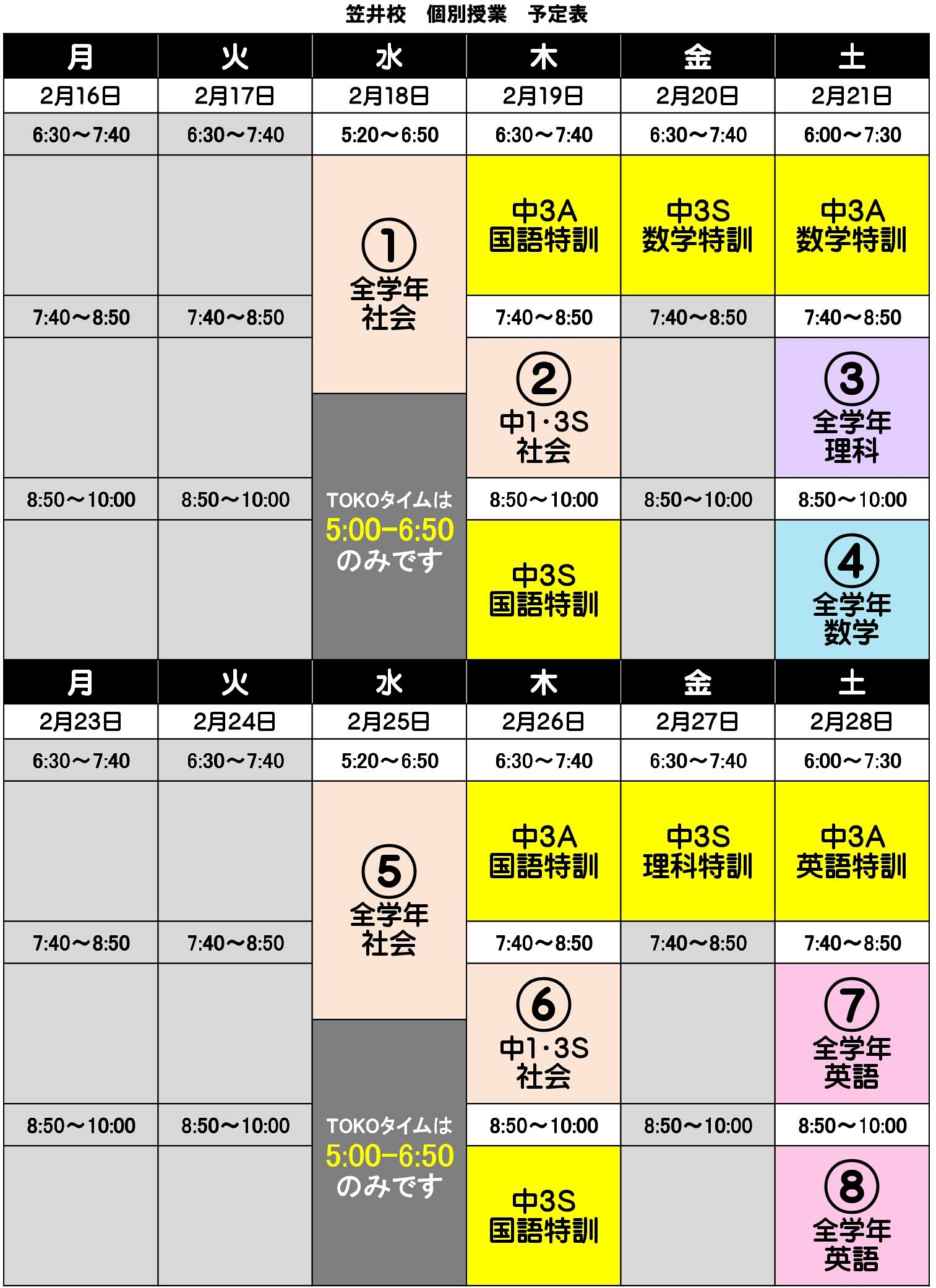 年度最後の個別授業日程です!
