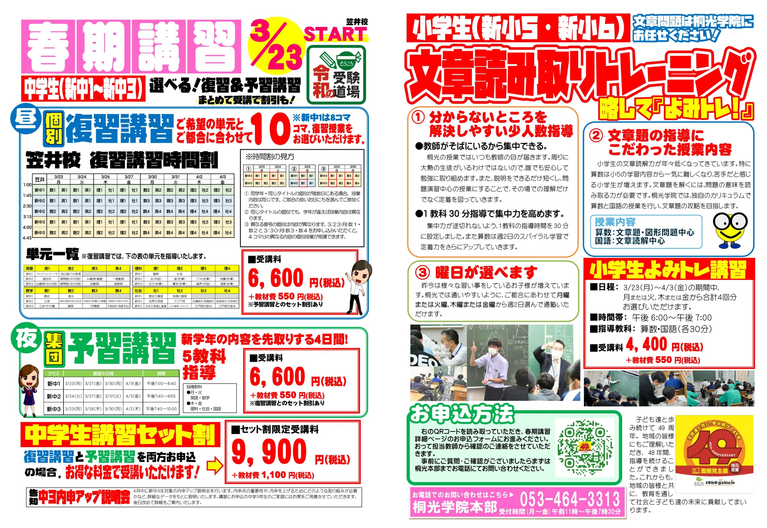 桐光学院の春期講習募集が始まっています。
