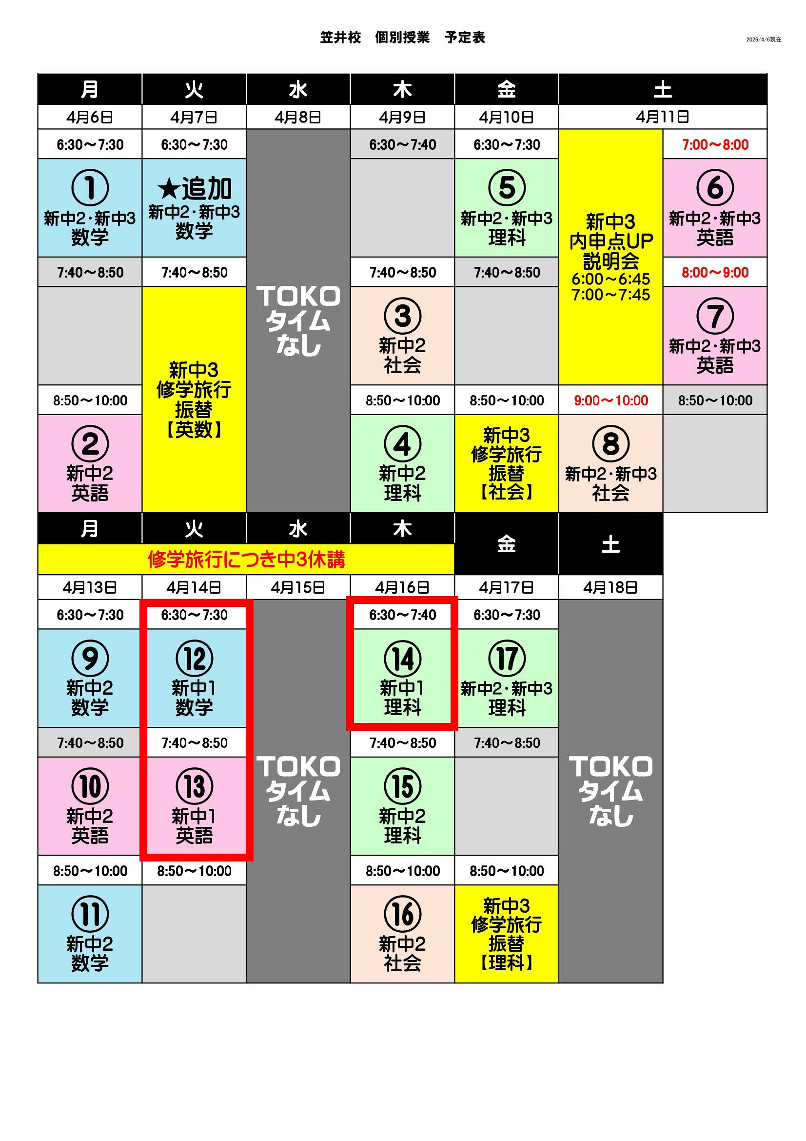 新中1の個別授業が来週から始まります。ご家庭でのご相談用のお申込用紙を今日から配布いたしますので,ぜひ保護者様とお子様でご相談ください。