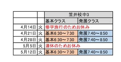 4月は修学旅行やゴールデンウイークと重なる日もあり、数学補習ができないときもあり残念です。