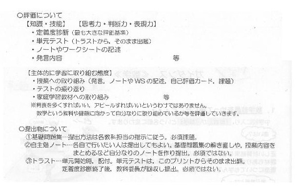 特に中3生はそのガイダンスに書かれていることをしっかりやっていけば、内申が上がる指示書です。