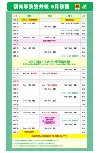 5月の最終週からは中3の1学期期末テスト対策が始まります。
