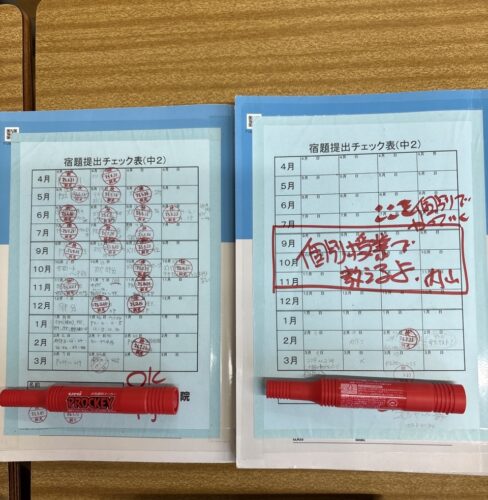 3月から桐光で勉強していた子は、裏面にはすべてチェックのハンコが押してあります。