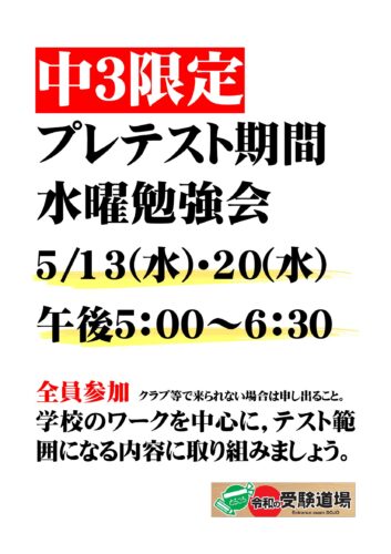 桐光でのテスト対策は5/25(月)の週からスタートしていきますが,それに先駆けて部活動のない水曜日に中3の勉強会を設定しました。