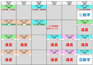 来週は中1・中2の月例テストの実施,中3の特別授業や対策授業がありますので,個別授業の枠が少なくなっております。