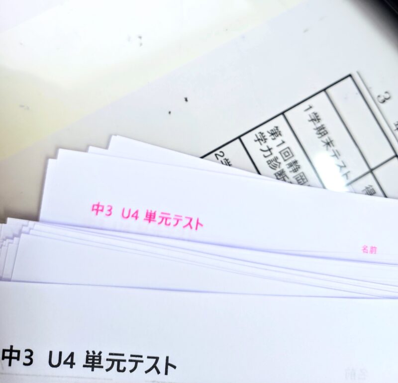 つい先日,東部中3の塾生から「来週英語(Unit4)の単元テストがあります」と聞いたので, 翌日すぐに[桐光(相馬ver)単元テスト対策教材]を作成し, その日の授業があるクラスと自主勉に来てくれた東部中3の生徒に渡すことが出来ました。