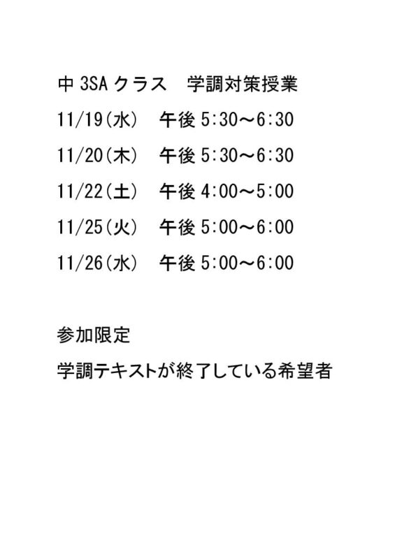 中3Sクラス、Aクラスの子供たちの学調数学授業です。