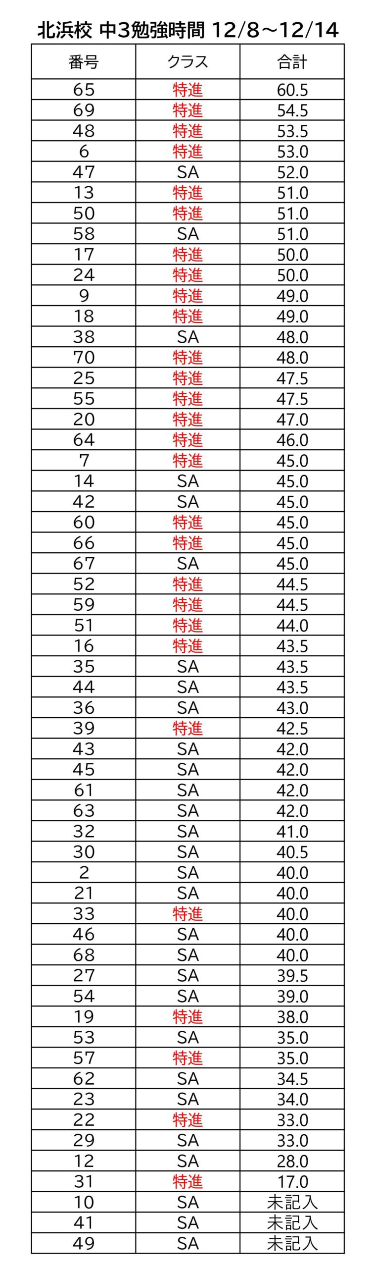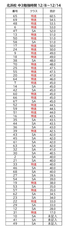 先週の勉強時間を公開します。先週と比べて北浜校中3全体も[自宅勉強時間]と[桐光での勉強時間]ともにアップしています。しかし1位の生徒は2週連続1位ですし, 上位に入っている生徒の顔ぶれにあまり変化がありません。今週lから面談の件数が増えているので,それをきっかけに変化してくれることを期待しています。毎週何十時間もライバルに差をつけられるのか, また逆に差をつけていくのか, 受験生たちは日々試されています。