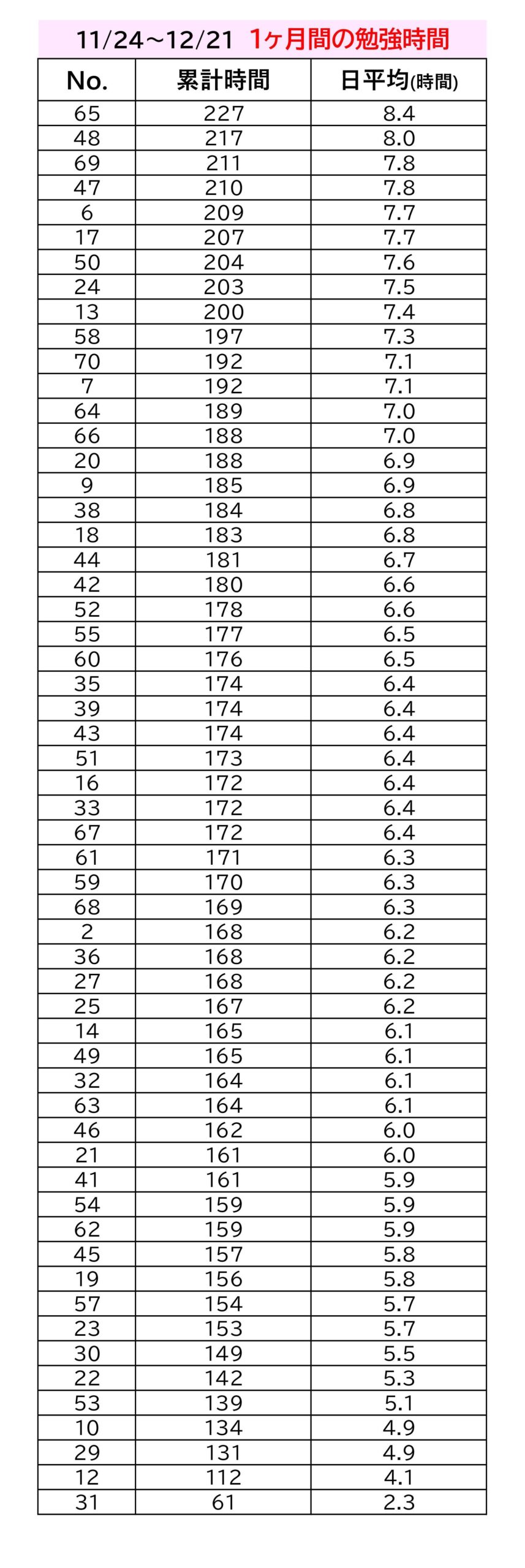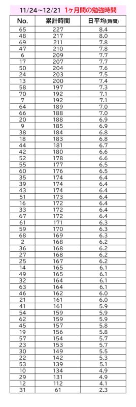 こんにちは。明日から1週間ほど休講になりますが, その前に中3受験生の11月末からの頑張りについて書いていこうと思います。この画像の通り, 北浜校の中3は4週間でこれだけの勉強を積み上げてきました。なおここに公開されている数字は学校にいる時間が含まれていません。塾か家か図書館かカフェかはたまたそれ以外の場所か, 時間も, 放課後か早朝か真夜中か, それは生徒一人ひとり違いますが, いずれにしても学校で過ごしている以外のどこかで頑張ってきた軌跡です。