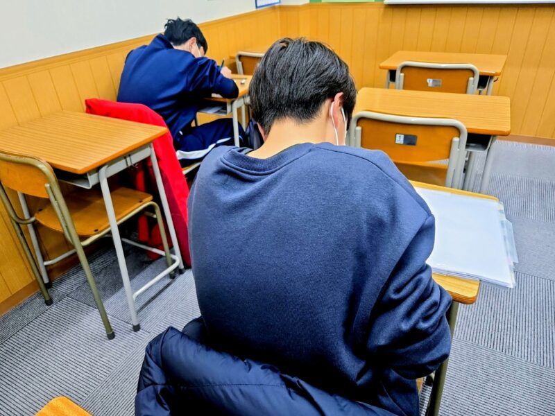 そしてこの日は夜にも授業がありました。スキー教室帰りの東部中の生徒と, インフルに罹患していない元気な北浜校中の生徒とで楽しくしっかりみっちり復習をしました。