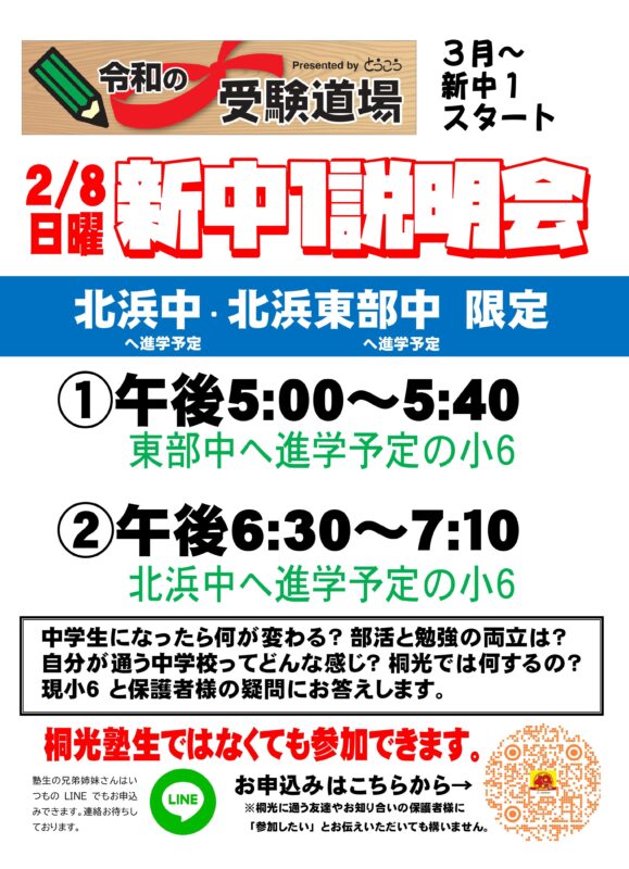 風が冷たい日にあたりましたが, 今日は[新中1説明会]です。