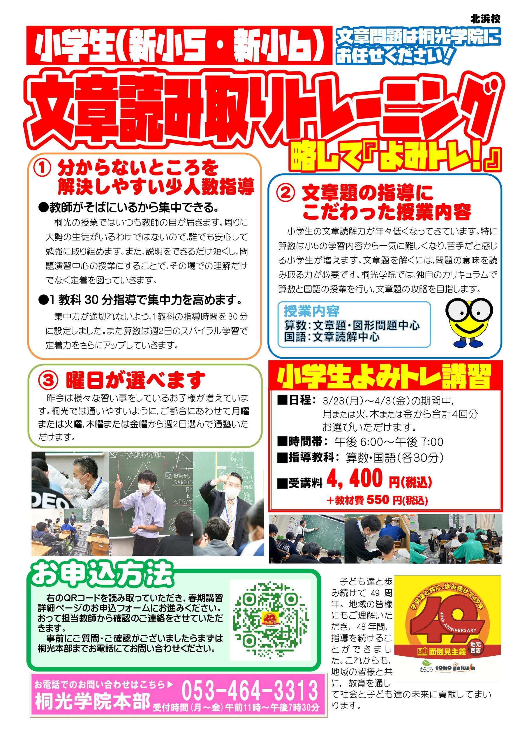 3月の下旬から春期講習が始まります。すでに何人もの方々から申し込みがありますが,あらためてブログにも公開していきます。塾生のみなさんの申し込みは必要ございません。まだ桐光に通塾していないお友達は申し込み可能です。桐光の春は復習と予習の両方をサポートします!
