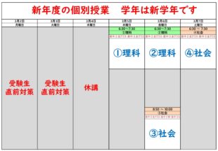 桐光学院では,3月5日(木)から新学年の授業がスタートいたします。そのため,上記の個別授業の日程表では,新学年の表記となっております。