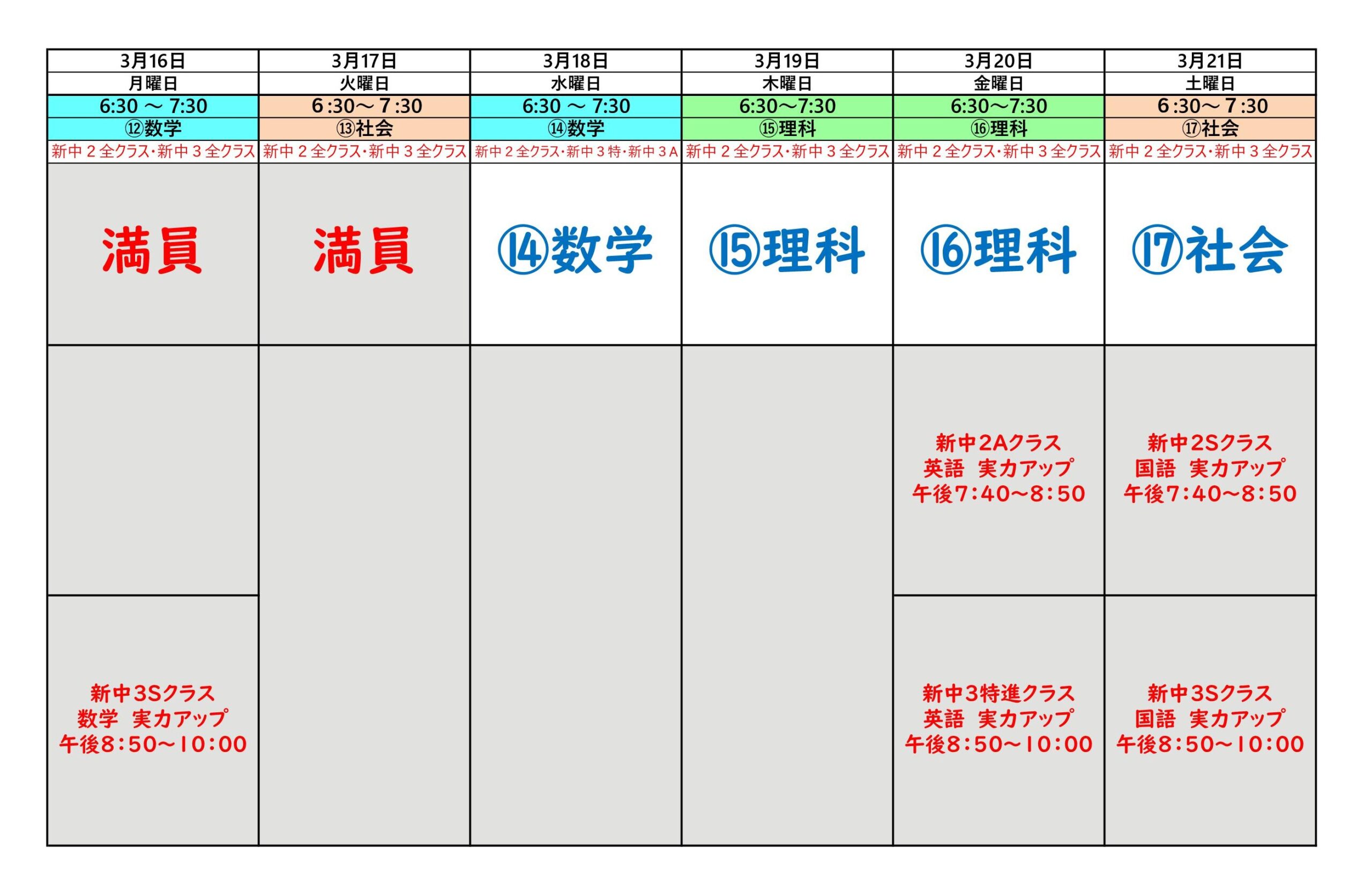 来週の個別授業枠が2つ(12番と13番)満員になりました。