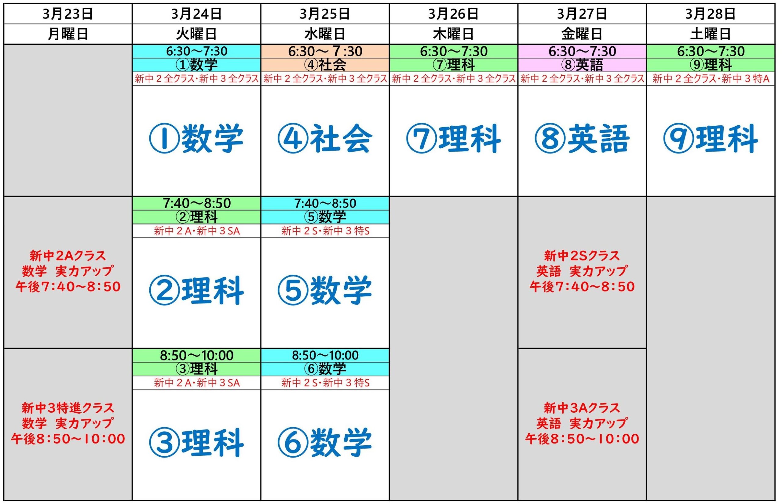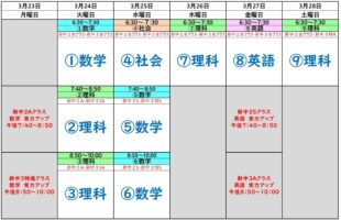 来週(3/23~3/28)の個別授業の予定です。