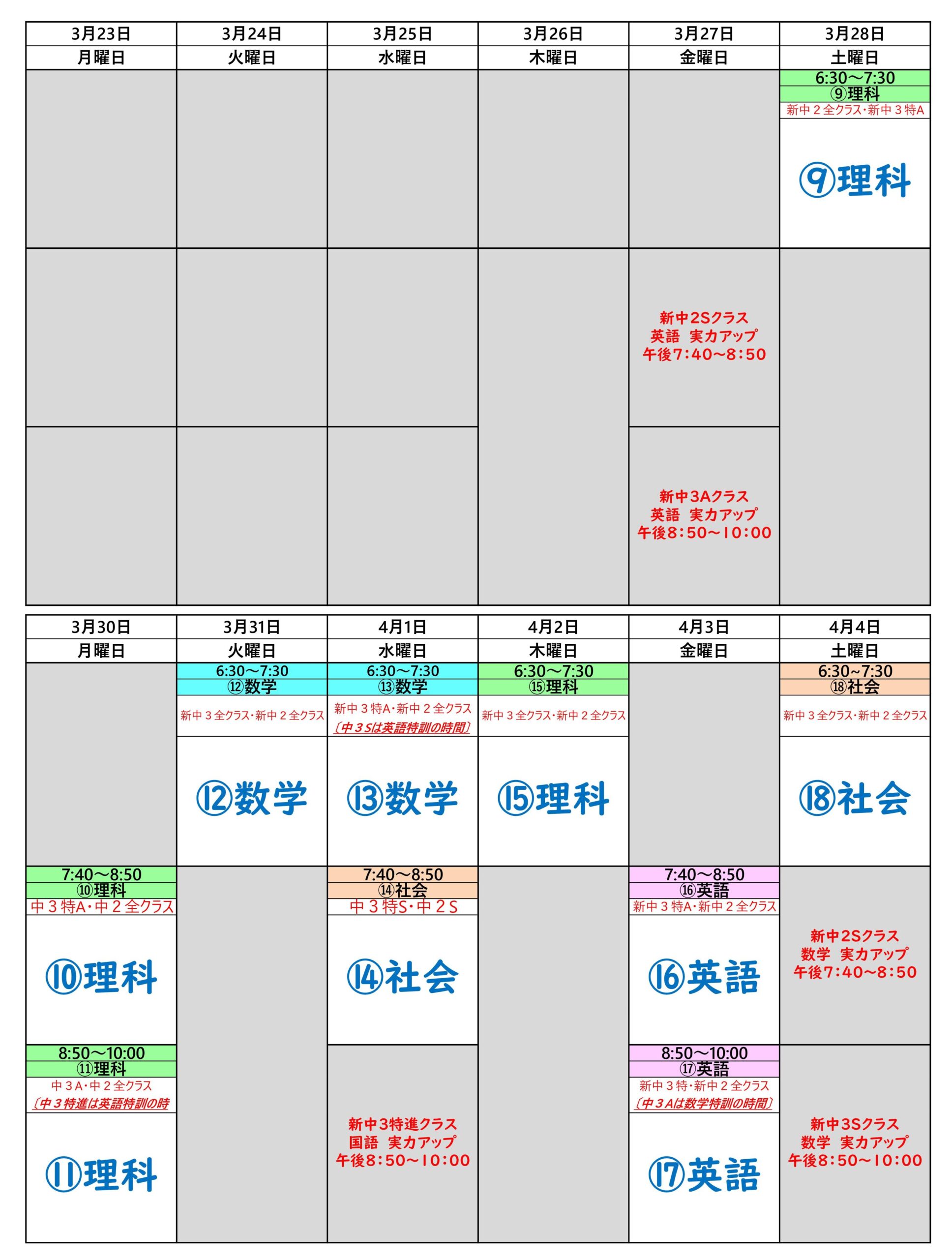 今週末と来週の夜の個別授業の日程です。塾生保護者の皆様にはオンライン個別予約フォームを送信いたしております。