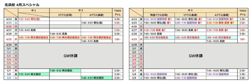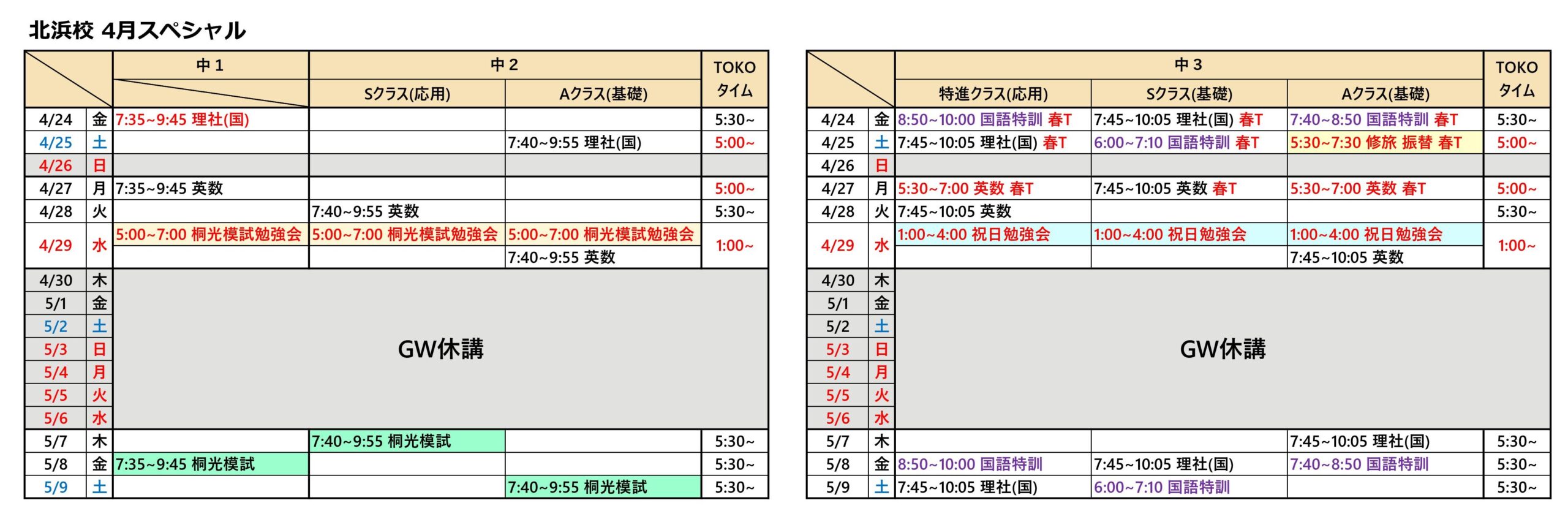 来週木曜(4/30)から一週間,桐光学院は休講です。