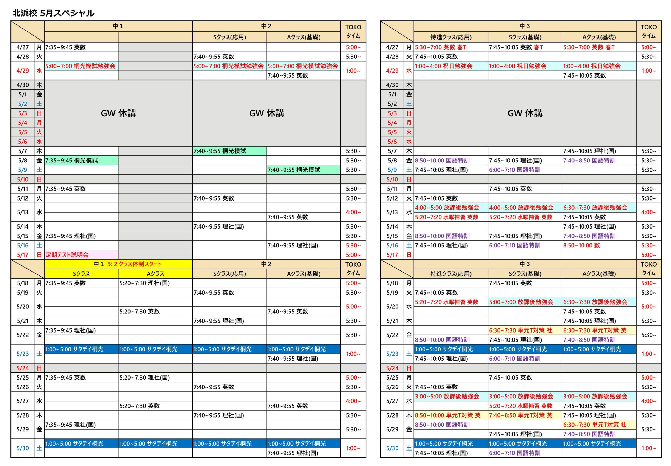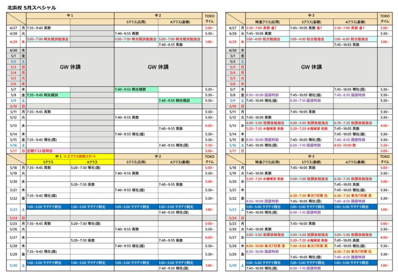 中3は内申点アップのための行動を増やしていく必要があるので,北浜校でもプラス授業を増し増しでお届けしていきます。中1・中2はプラス授業こそあまり入っていませんが,TOKOタイムにどしどし校舎に来てね。家でも勉強は出来ますが,桐光には先生たちが準備してある特別な教材を何枚ももらえるし,授業の合間に質問することも出来る。しかもテレビやスマホの誘惑も無い。集中環境をどれだけ生かしていけるか?その積み重ねで勉強の量や質に大きな違いが出てきます。