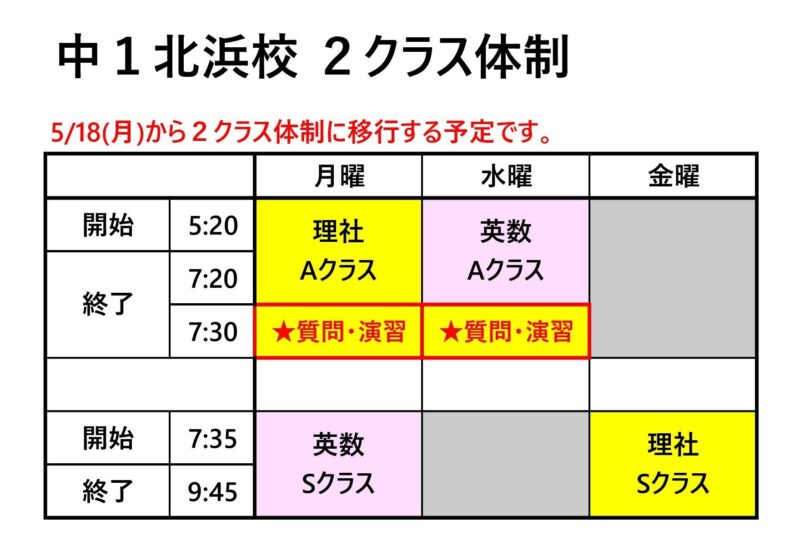 GW休講明け…桐光の希望クラス(通塾曜日)確認
