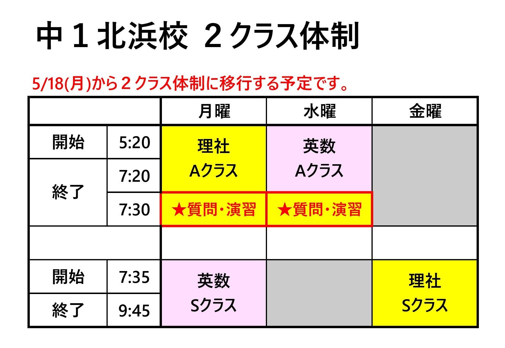 5/18(月)…2クラス体制スタート