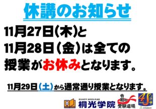 BLOG2025/11/21来週木金 休講 (相馬)こんにちは。普段平日の休みがあまり無いので, たまに平日に休みがあるとどう過ごしていいのかわからなくなる…