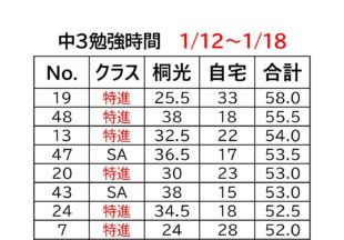 BLOG2026/01/23中3 勉強時間 1/12…こんにちは。11月24日以降, 勉強時間を集計してきましたが, 入試までこれだけ近づいてきている状況下に…