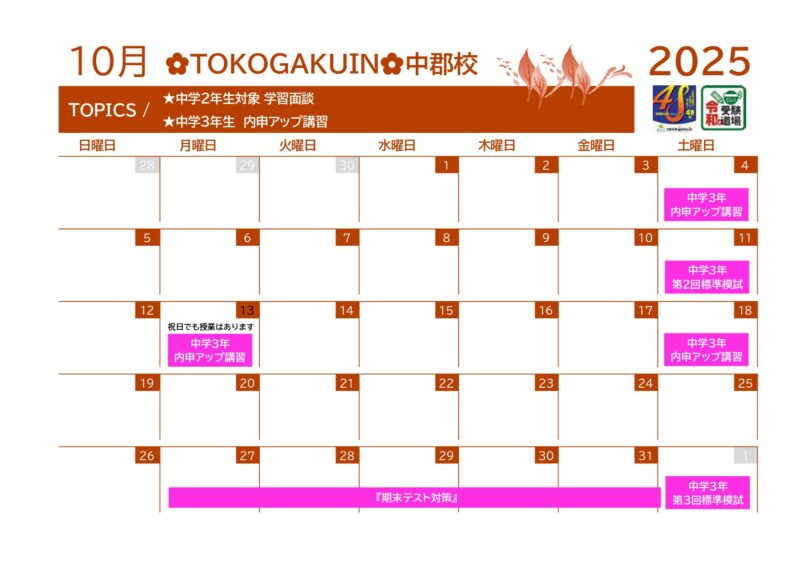 10月中旬からは11月の定期テストに向けて準備をしていきます。