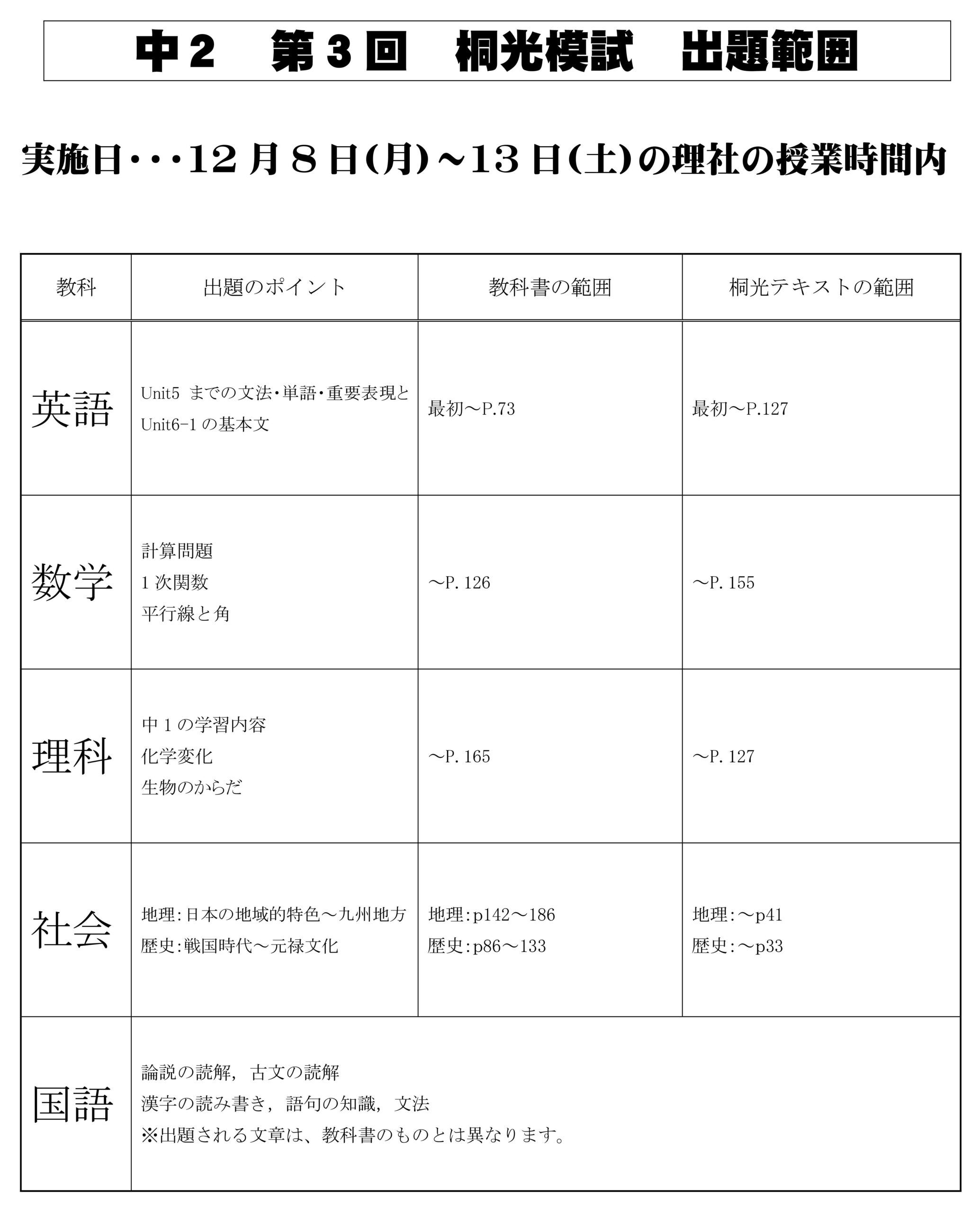 テスト範囲は、ほぼ期末テストと同じ範囲になります。