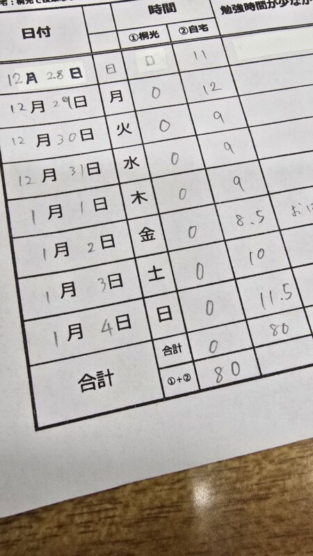 全員分をしっかりと目を通していませんが、ざっと見たところ、この80時間の生徒が中郡校の一番の勉強時間だと思われます。