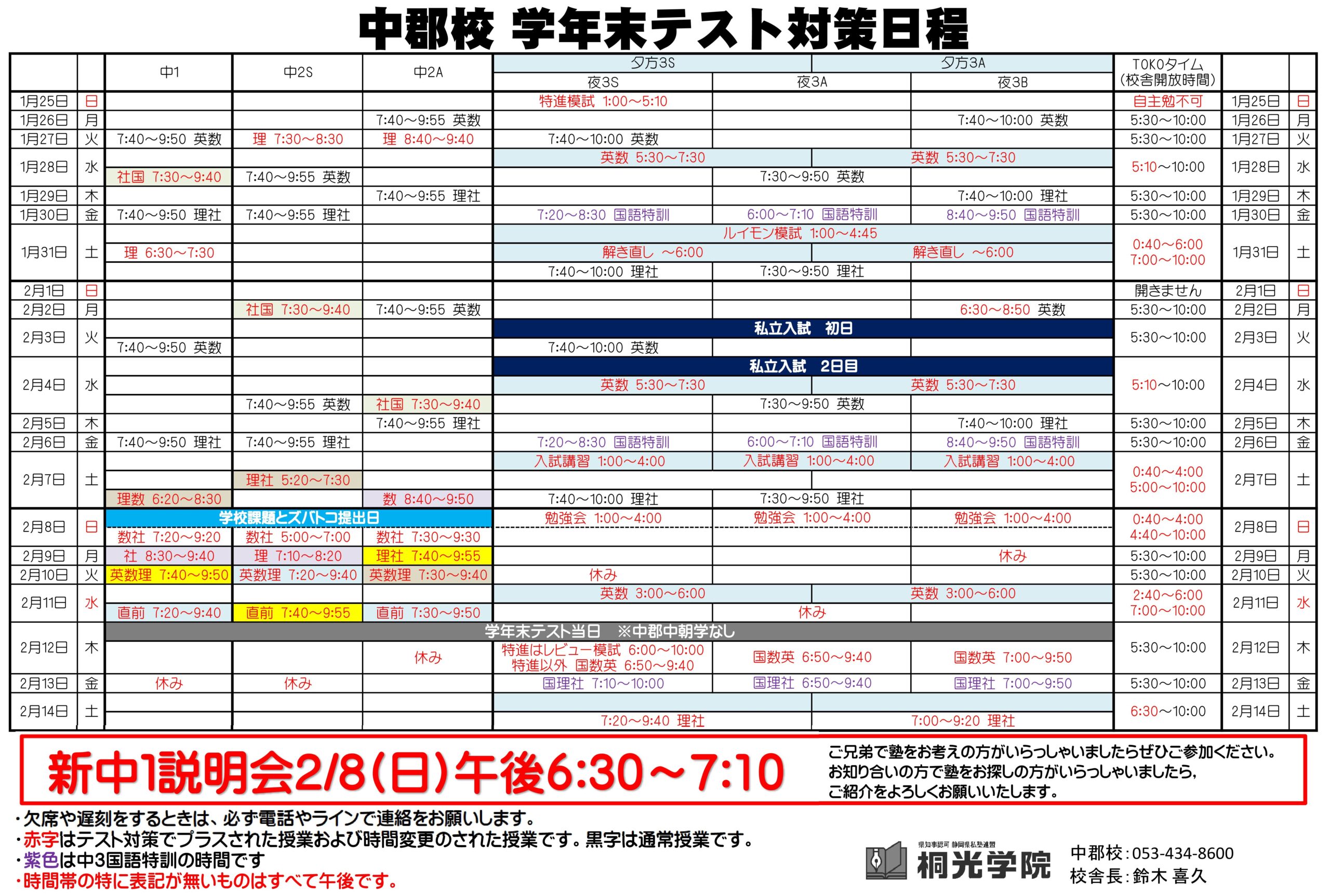 1/26から中1中2の学年末テスト対策が始まります。