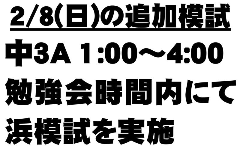 3Aクラスは、2/8(日)午後1:00~4:00の勉強会の時間にて、浜模試を実施することになりました。