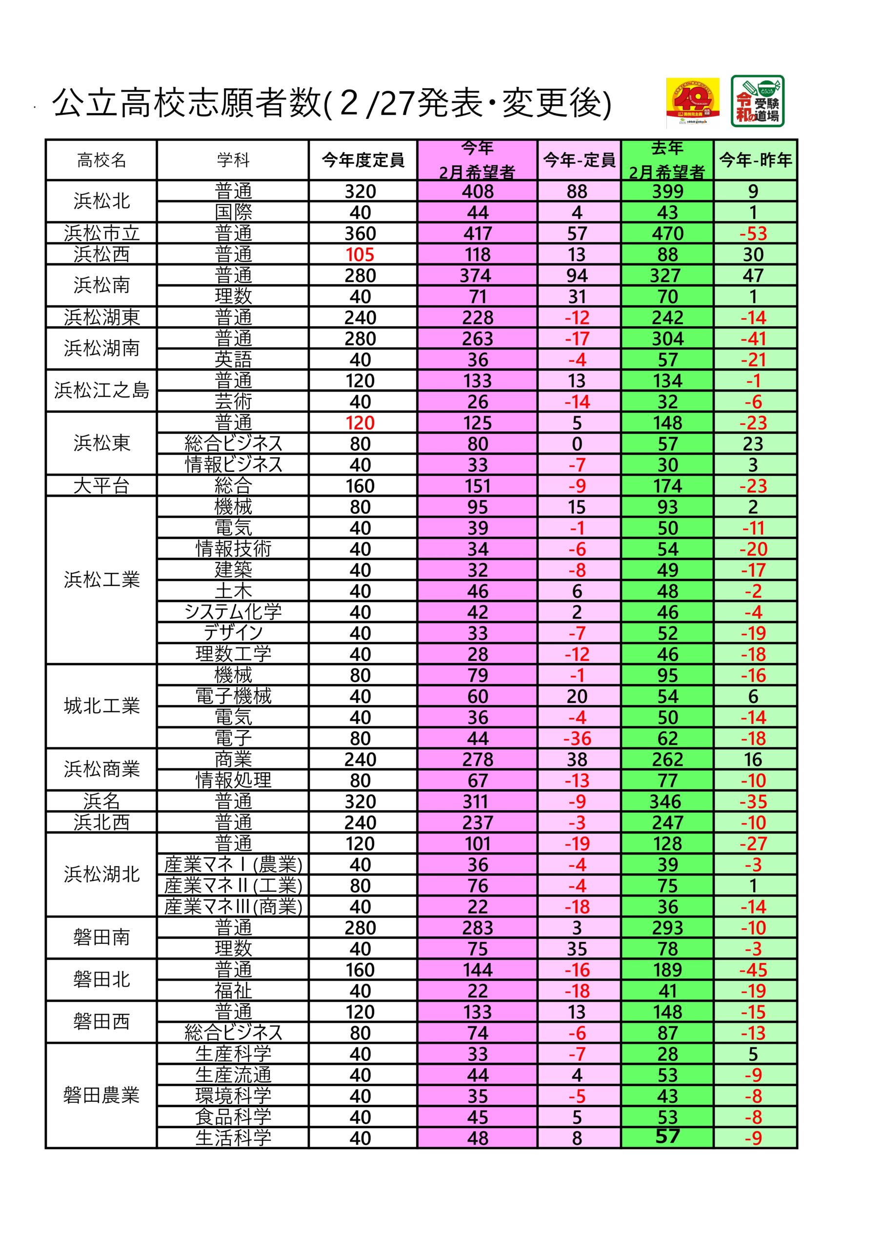 志願変更後の志願状況が発表されました。