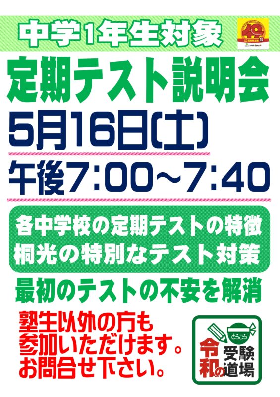 そんなころに初めての定期テストが近づいてきます。