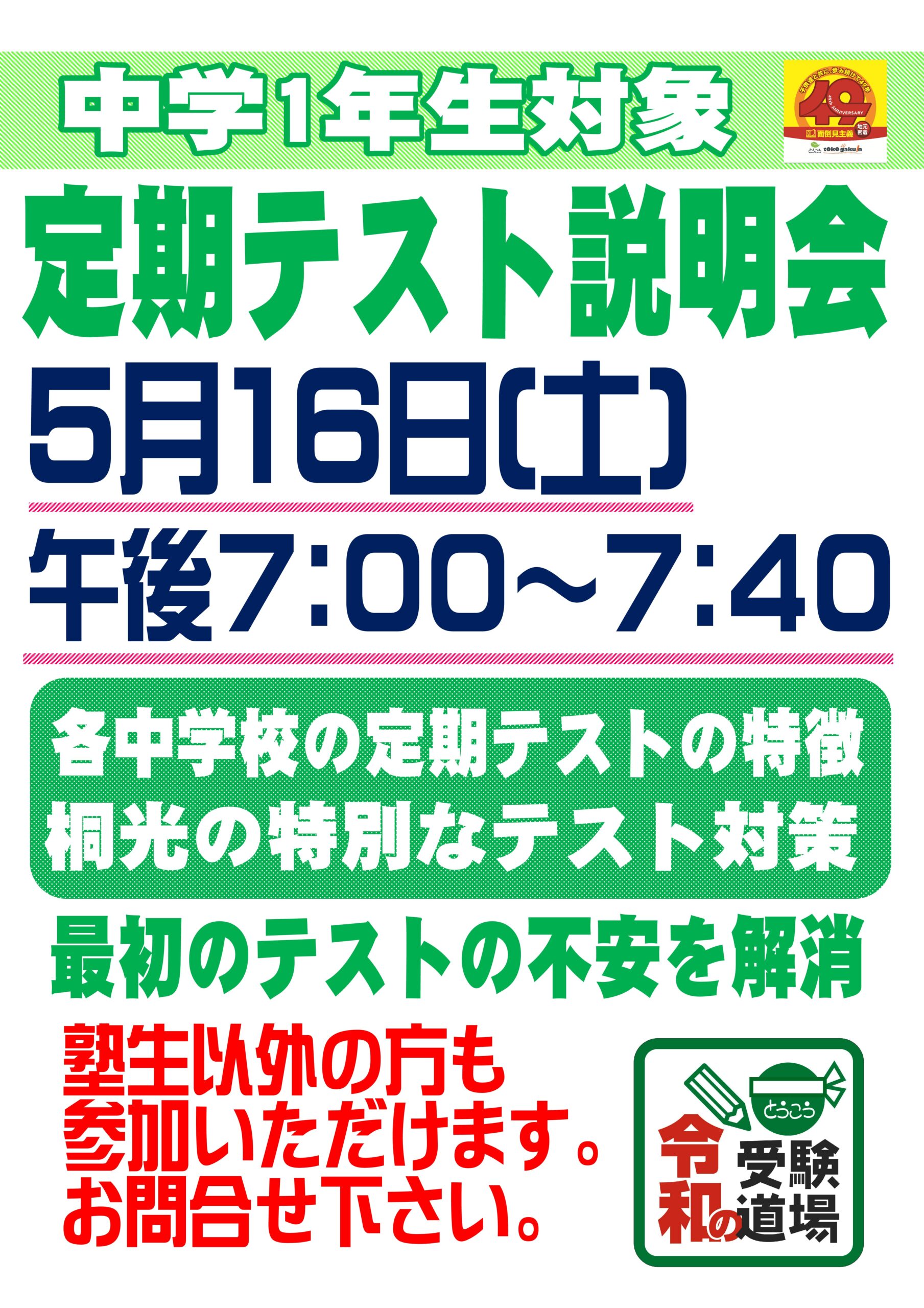 そこで,桐光では毎年,「中1定期テスト説明会」で改めて中学校のテストに向けた勉強のがんばり方を説明する機会を設けています。