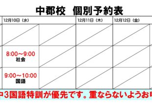 BLOG2025/12/1112/15~20 個別日…個別授業の日程です。 お子様からご希望を伺ってはいきますが、保護者様から是非School Manager…