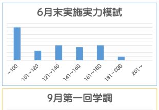 もっと見る各中学で学調が返却されました。 この夏は6月末に実施した学調模試から何点上げられるかが勝負でした。 下は…