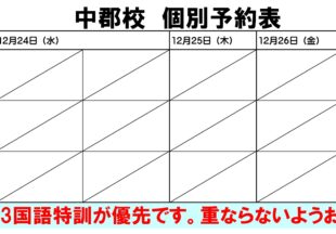 BLOG2025/12/2212/22~27 個別日…個別授業の日程です。 お子様からご希望を伺ってはいきますが、保護者様から是非School Manager…