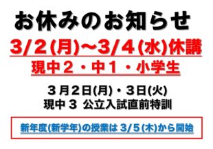 BLOG2026/02/28最後の週末 鈴木いよいよ公立入試前の最後の週末を迎えました。 受験生たちは朝からきっとがんばってくれていることでしょう。…