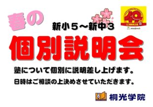 BLOG2026/02/21個別説明会 杉山桐光では3月から新学年での指導となっていきます。 現小6は新中1として授業が開始となります。 新年度の授…