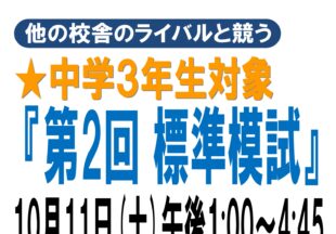 もっと見る受験生にとって夏に続いて2回目の模試になります。 忘れ物が無いように。 10月11日(土)午後1:00~…
