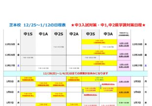 BLOG2026/01/12個別日程 1/12~17…個別予約表を載せておきます。 ここからの目的は… ①入試[中3]に向けての勉強 残り3ヵ月!志望校合格の…