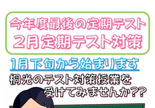 BLOG2026/01/10中学1・2年生『2月定期…桐光学院では毎回の定期テスト前に「テスト対策」を実施しています。 5教科の「テスト対策授業」で、頑張る…