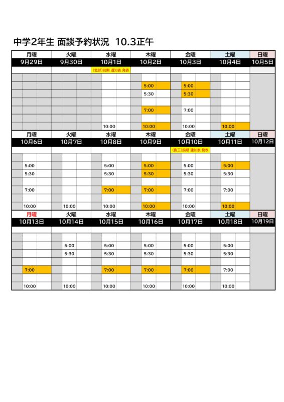 そして、校舎では中学2年生を対象とした三者面談を今週水曜日[10.1]から実施しています。