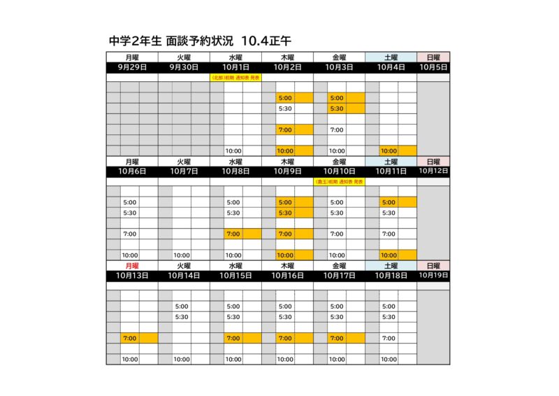 校舎では中学2年生を対象とした三者面談を今週水曜日から実施しています。