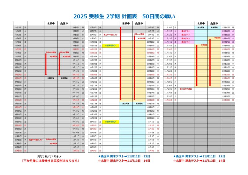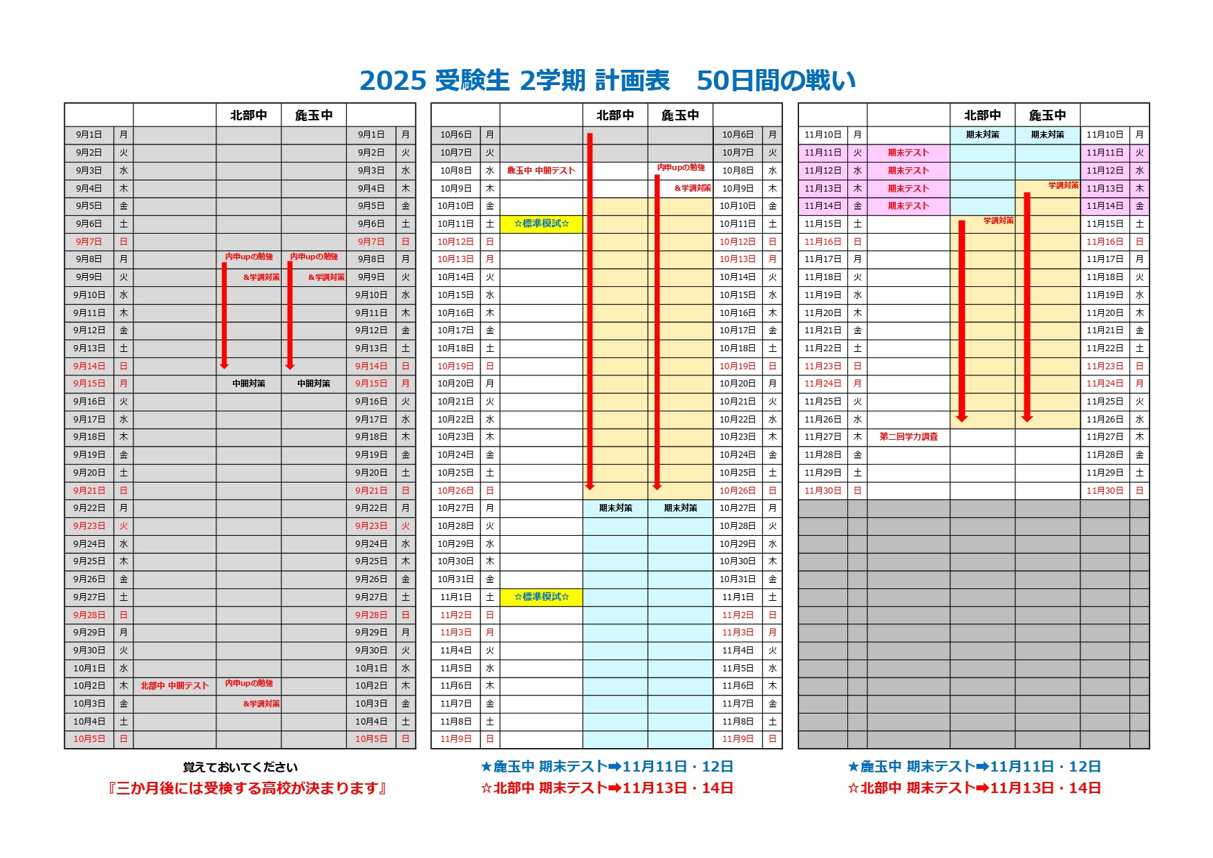 11月11日~14日…期末テスト[麁玉中・北部中]